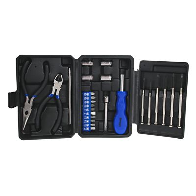 Биты-9 шт., Переходник ¼»-1 шт., Длинногубцы- 1 шт., Бокорезы-1 шт., Отвертка-1 шт., Пинцет-1 шт., Удлинитель-1 шт., Отвертки для точечных работ-6 шт., Торцевые головки ¼»-4 шт ( 7,8,9,10 мм);