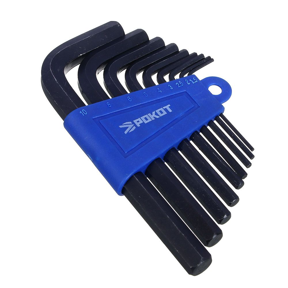 Набор ключей-шестигранников РОКОТ 1.5-10 мм для работы с крепежными элементами включает 9 шестигранников разного размера. Все ключи изготовлены из качественной инструментальной стали, устойчивой к деформации. При работе в труднодоступных местах удлиненный конец может быть использован в качестве рабочего. В комплекте удобный футляр для хранения с маркировкой размеров.