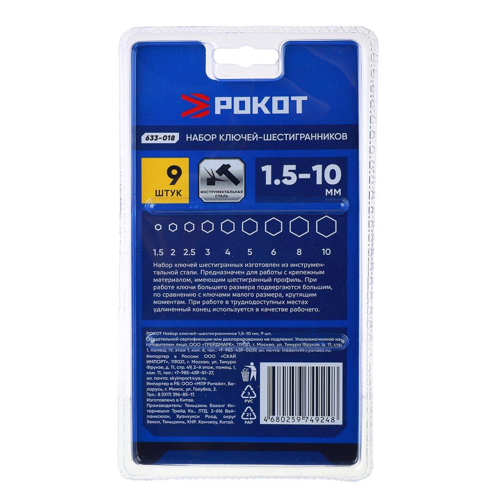 РОКОТ Набор ключей - шестигранников 1,5-10мм, 9шт.