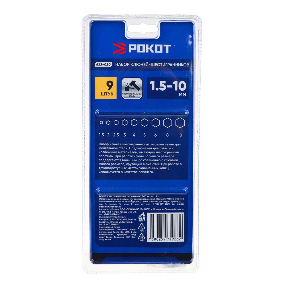 РОКОТ Набор ключей - шестигранников 1,5-10мм, удл.,9шт.