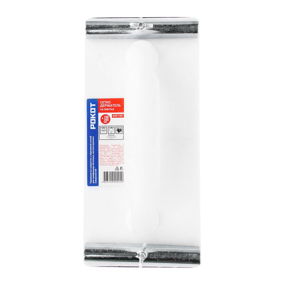 Сеткодержатель на винтах РОКОТ – необходимый инструмент при проведении отделочных работ. Применяется совместно с абразивной сеткой для шлифования бетонных, оштукатуренных поверхностей. Эргономичная пластиковая рукоятка делает процесс использования более комфортным. Винты надежно фиксируют сетку. Размер – 105х220 мм.