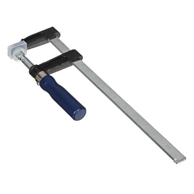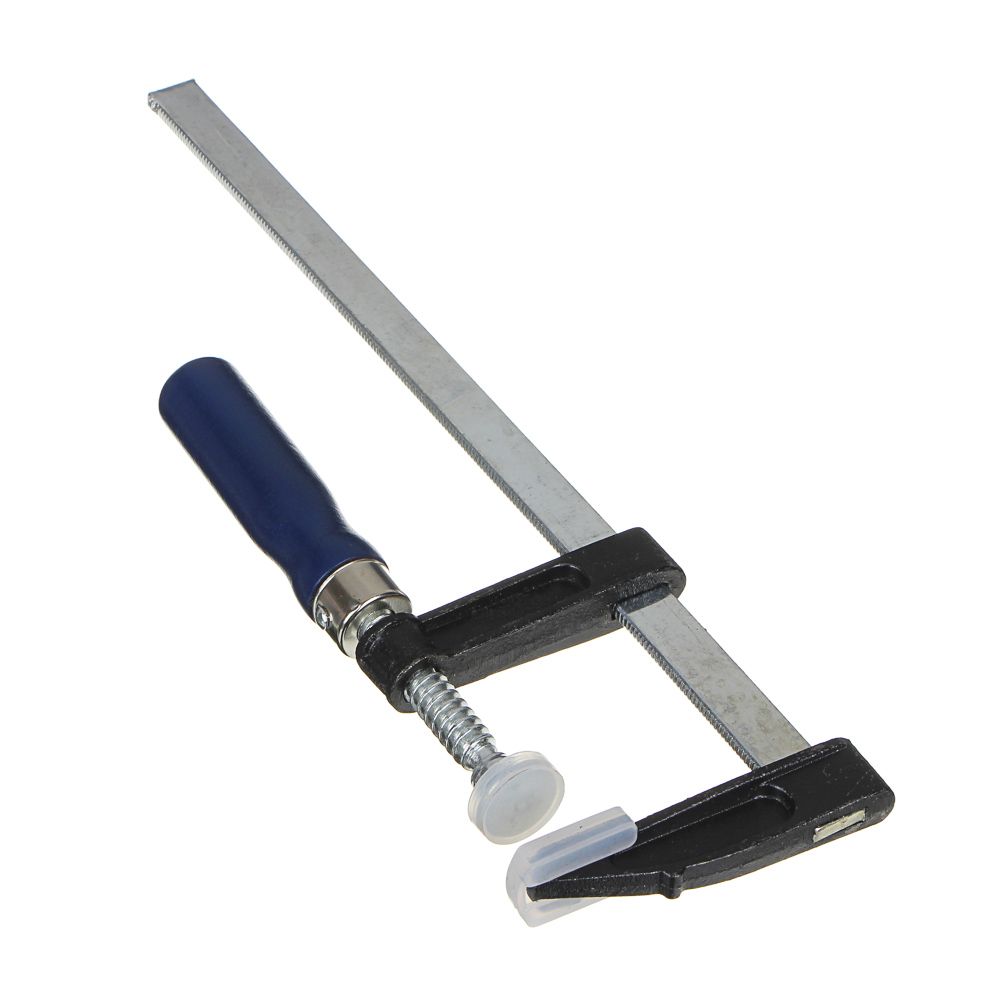 Струбцина f-образная быстрозажимная РОКОТ применяется для зажатия и фиксации различных заготовок и деталей при склеивании и других слесарных работах. Зажимное устройство подвижной части крепко фиксирует детали и регулируется с помощью винта. Материал конструкции - качественная инструментальная сталь, ручка сделана из древесины и покрыта лаком. Размер 250х50х300 мм.