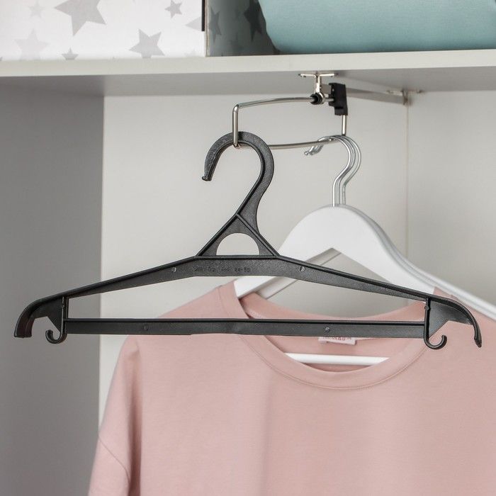 Вешалка – это компактное приспособление, которое позволит вам разместить в гардеробе классические штаны из лёгких или плотных материалов, блузки, рубашки, кофты и другие вещи. Изделие практичной формы занимает мало места, что позволяет экономить пространство в шкафу. Эргономичная форма поможет надёжно зафиксировать одежду и предотвратить её падение.